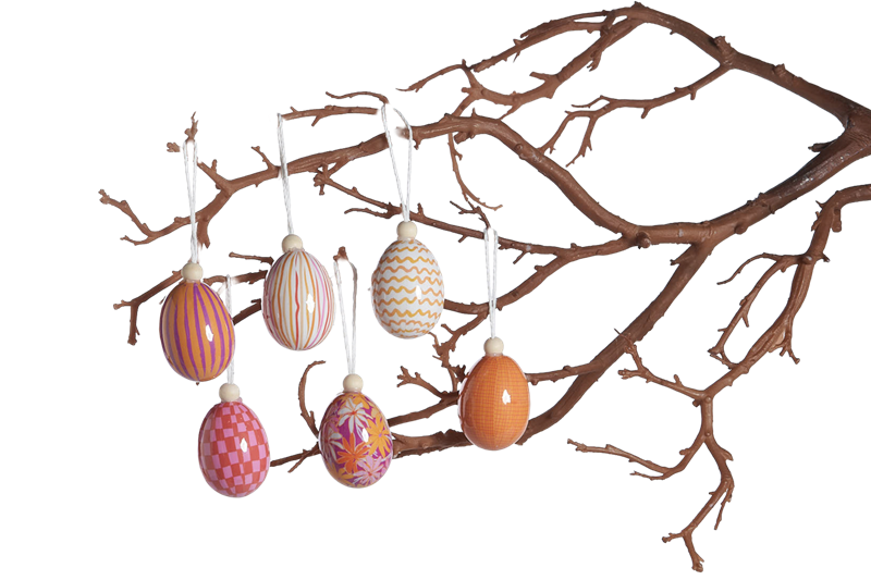 Das leichte Eier-Set aus Schaumstoff setzt mit unterschiedlichen Mustern frühlingshafte Akzente. Zum Aufhängen gestaltet, eignen sich die Eier perfekt für Zweige, Kränze oder Fensterdekorationen.